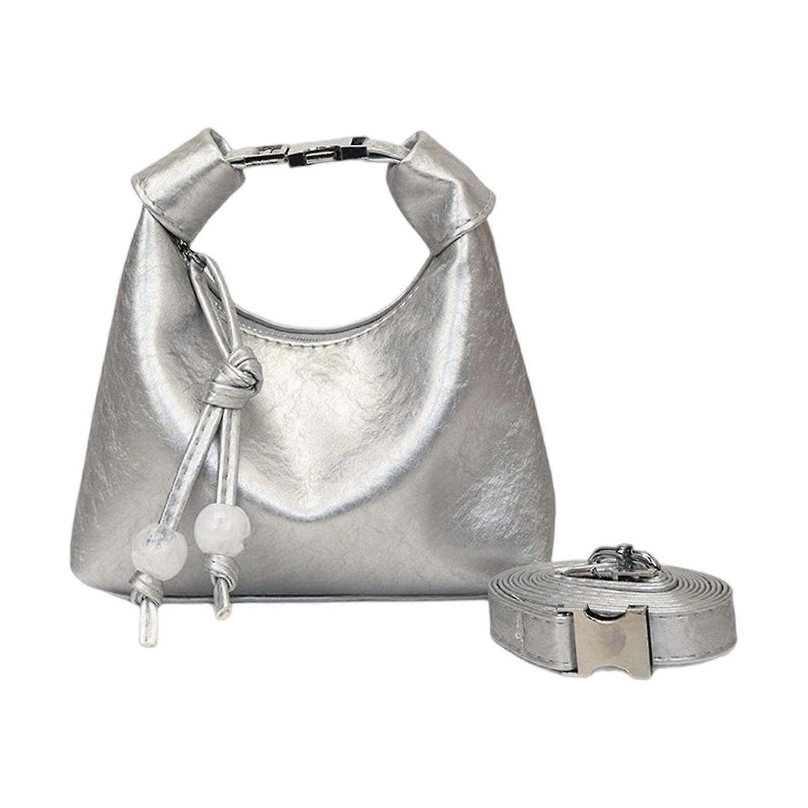 Leather Shoulder Bag for Womens Chinese Style Purse Handbags Retro Clutches Purse with Zipper Closure for Evening Party Silver