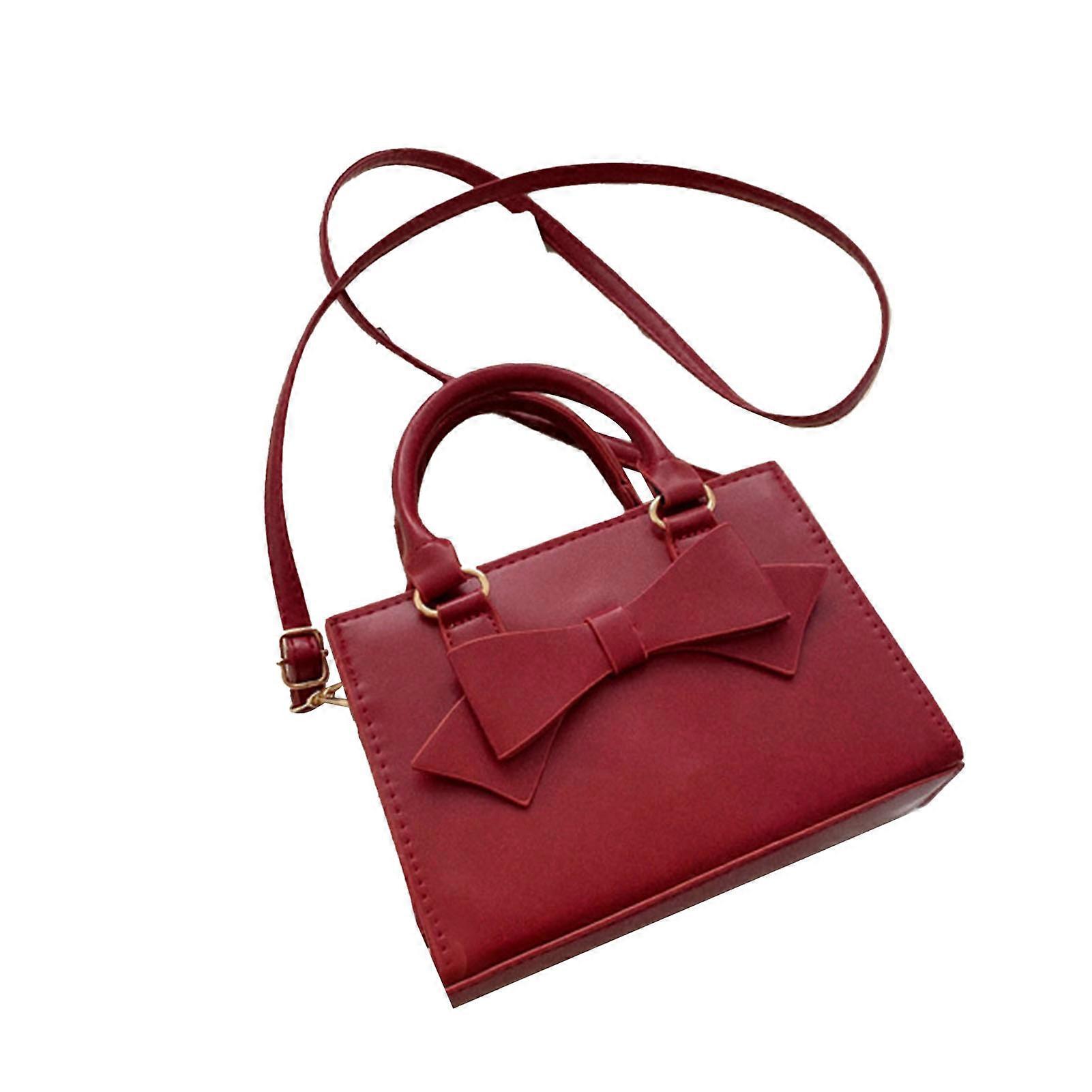 Women Leather Shoulder Bag PU Leather Stylish Women Leather Handbag Small Shoulder Bag with Bow Decoration for Daily Party Wine Red Free Size