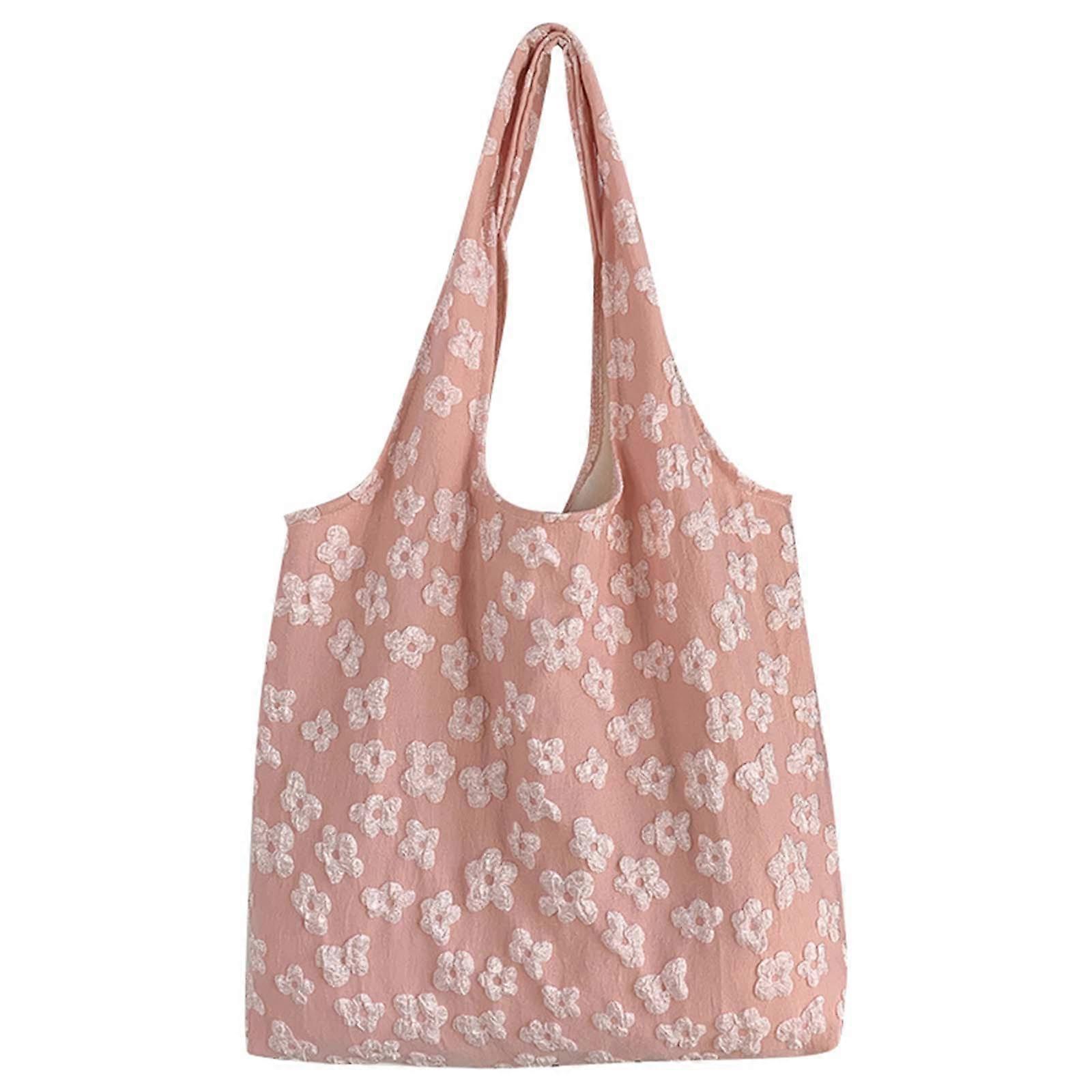 Fashion Textured Flower Shoulder Bag Nylon Carryall Underarm Bags Casual Handbag for Modern Women's Everyday Use Pink