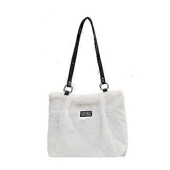 Versatile Cow Pattern Plush Shoulder Bag Large Capacity Women Handbag for Everyday Use White