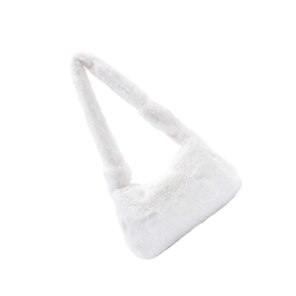 Women Plush Shoulder Bag Fashionable Tote Bag Delicate Handbag White