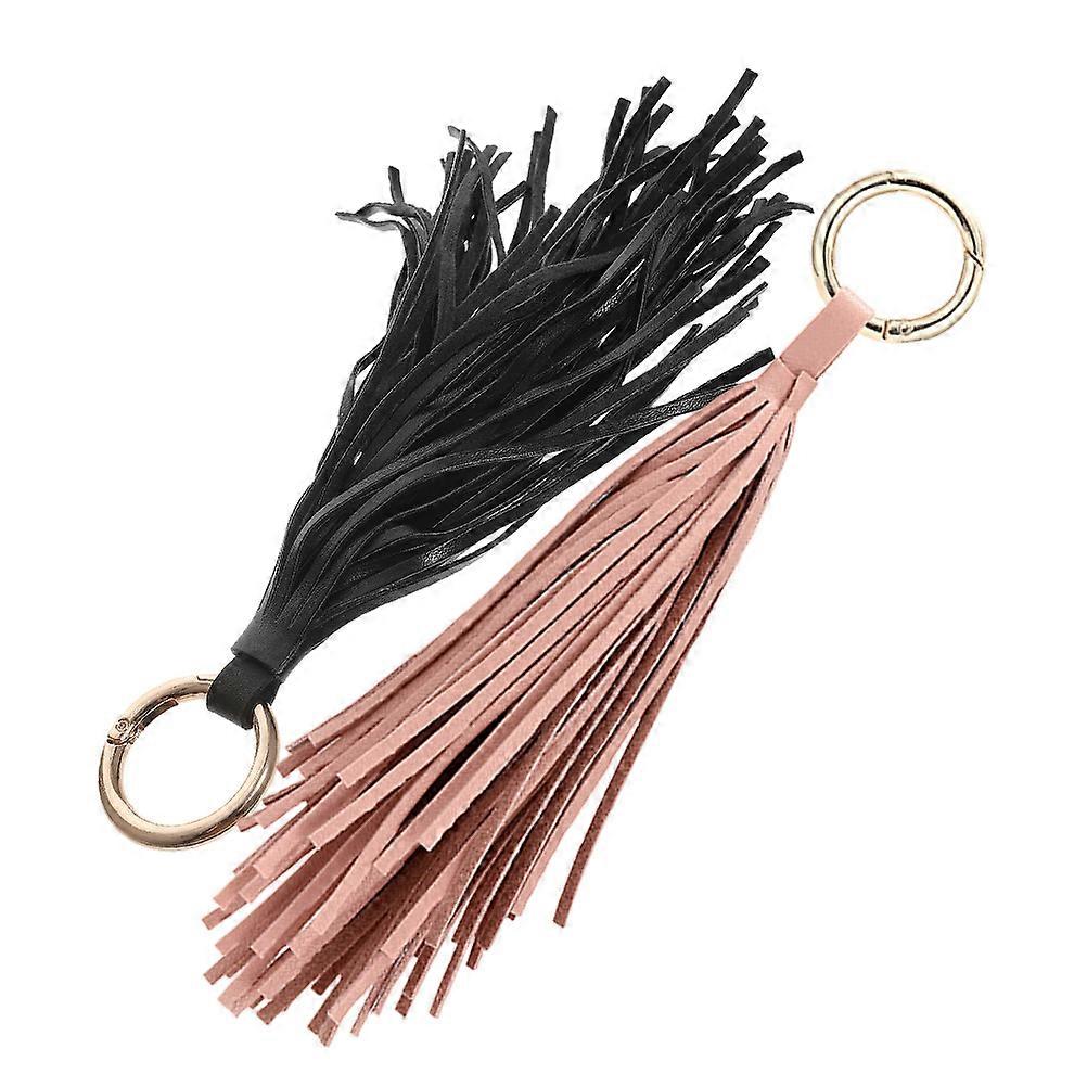 Handbag Keyring Tassel Accessories Elegant Keychain For Cars Offices Homes Black Alloy Material 2Pcs