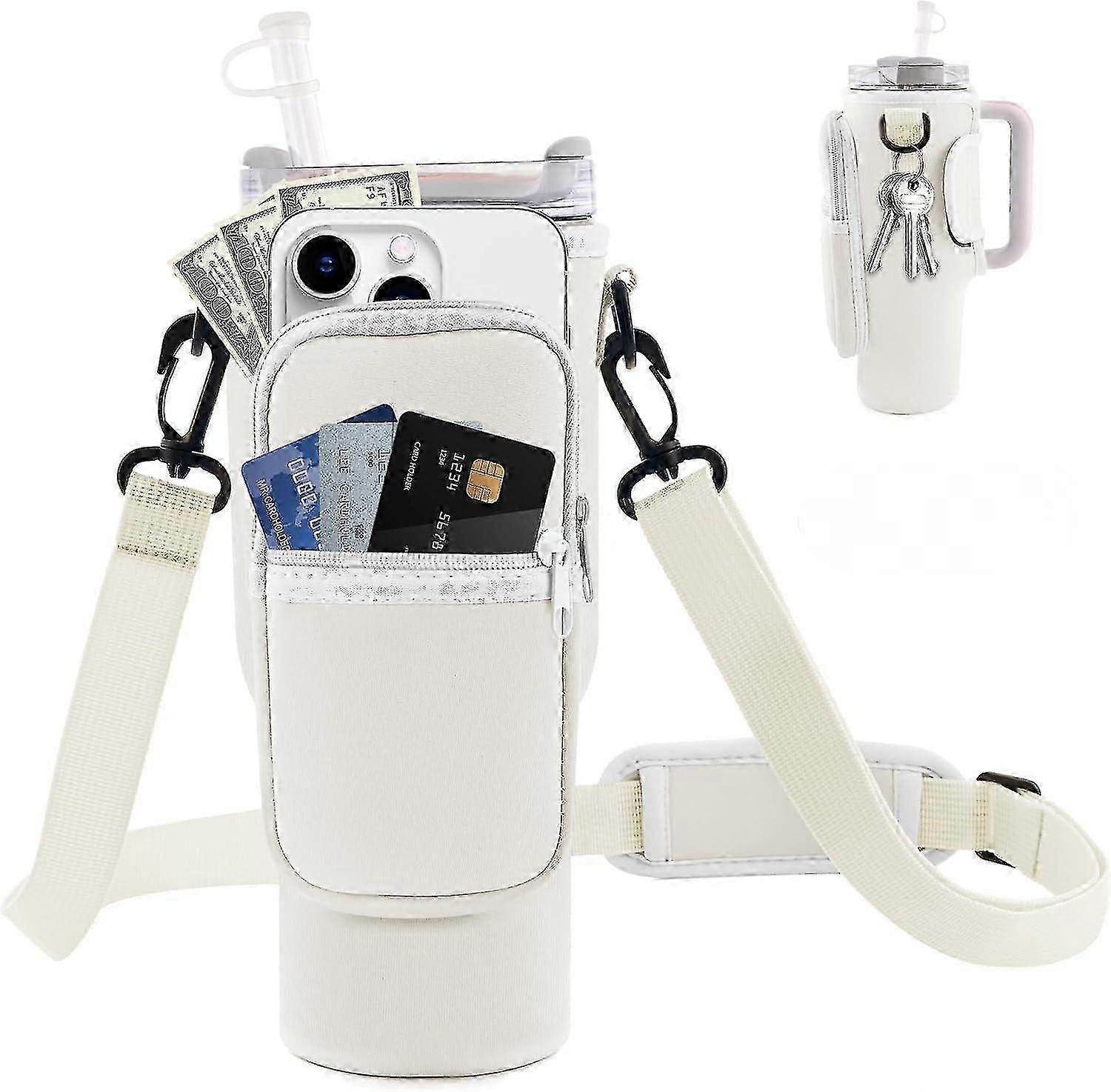 Water Bottle Carrier Bag with Phone Pocket for Stanley Cup 40 oz, Water Bottle Holder with Adjustable Strap& Straw Cover, Stanley Cup Accessories