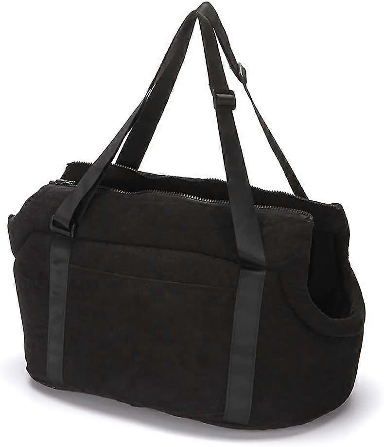 Washable Dog Carrier Bag Cat Handbag Dog Carrier Basket Rabbit Bag Corduroy Travel Bag for Countryside Pets, Black L
