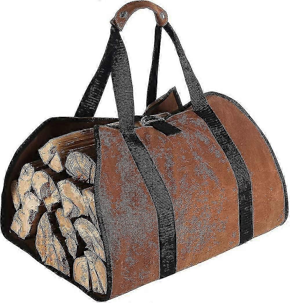 Large Canvas Log Carrier Bag 38x 18 Heavy Duty Waxed Durable Waterproof Fireplace Firewood Tote Bag(brown) - Ya