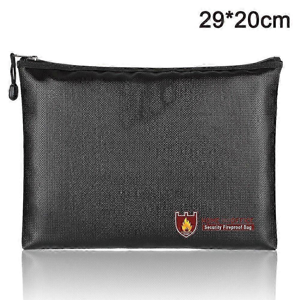Product Material: silicone fiberglass cloth Size: 29cm * 20cm Color: Black PACKAGE INCLUDES 1 x fireproof document bag 1. HIGH QUALITY MATERIALS Use upgraded silicone-coated fiberglass fabric, our bag can withstand temperatures up to 800-1000 . 2. DOUBLE PROTECTION Designed with fireproof zipper and sewing thread for added security, you don't need to worry about your valuables falling out of our document pocket. Our document bag ensures that all valuables are 100% safe. 3. KEEP YOUR VALUABLES SAFE Document storage designed to protect valuable items from fire or explosion caused by improper charging or malfunctioning lithium battery packs. 4. REALLY SPACIOUS INSIDE With a size of 29 * 20cm, our document storage can hold most of your most valuable items, such as A4 paper, jewelry, legal documents, passport, money, tablets, etc. Passport, money, tablets, etc . 5. COMPACT AND FOLDABLE Simply put your valuables in your pocket and close them with a zipper. Fireproof document bags can lie flat in your safe, suitcase or drawer so you can keep them anywhere in your home or office.