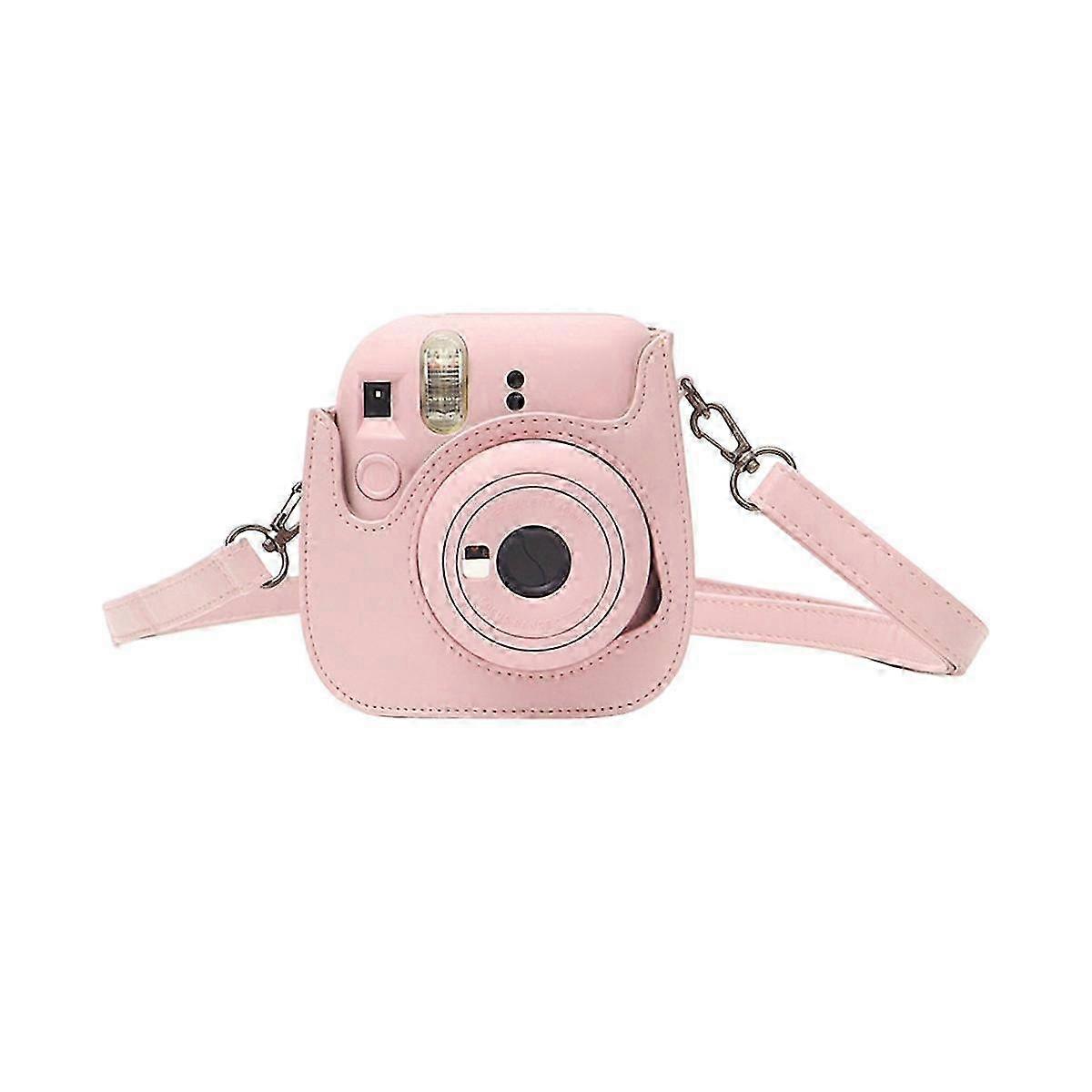 Camera Bag for Suitable Brand Mini Camera with Shoulder Strap PU Leather Soft Silicone Cover - Pink
