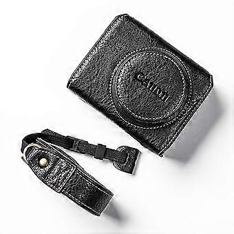 תיק מצלמה מעור Pu הניתן להסרה עבור Canon G7 X Mark III/G7 X Mark II, כיסוי מגן בעיצוב פתיחת סוללה עם רצועת כתף