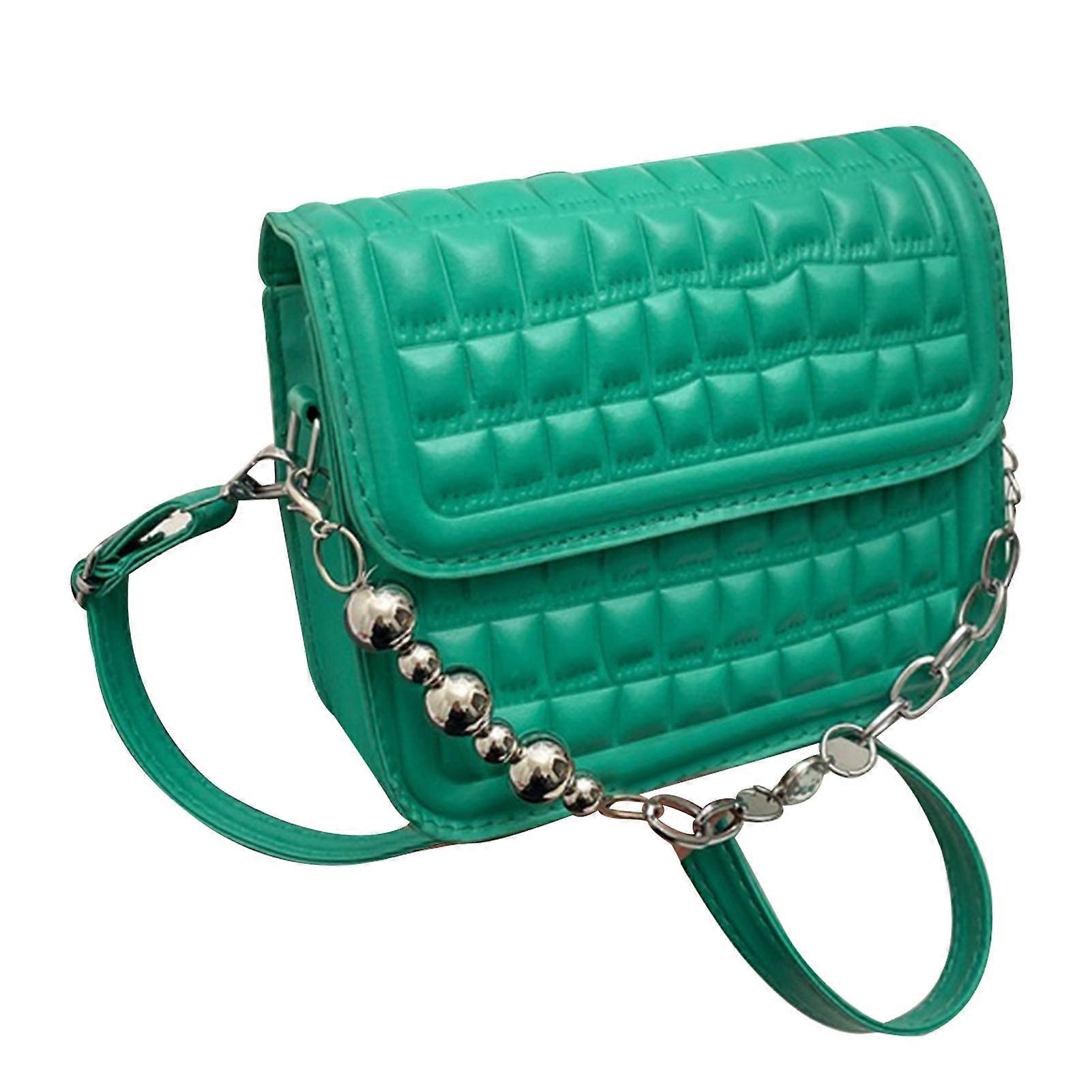 Small Square Bag Women Single Shoulder Messenger Stylish Texture with Zipper Chain Decoration Green Free Size