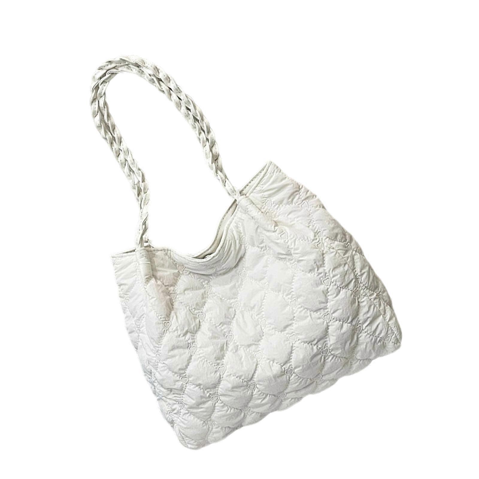 Professional Women's Cotton Bag Stylish Rhombic Stitching Design Lightweight Office Bag With Reinforced Bottom And Strap White