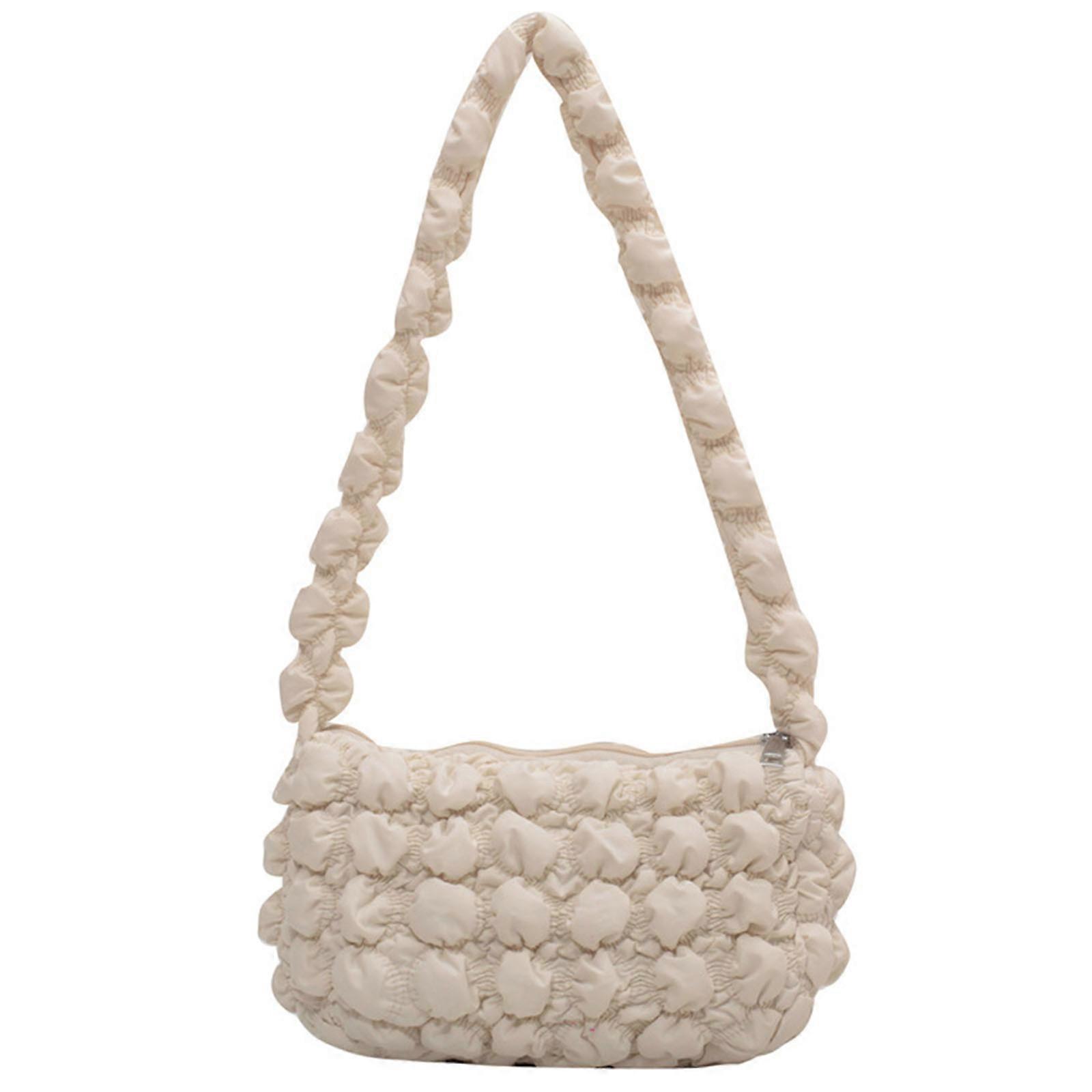Elegant Solid Color Pouch Bag Underarm Bag Handbag Pleated Cloud Bag Evening Bag Shoulder Bag for Girls Women White