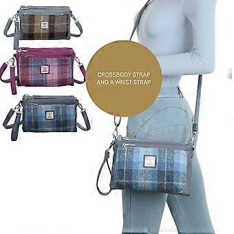 Love EMVY Signature Tartan Tweed Collection Crossbody Bag Genuine Harris Tweed Wool Fabric 3 Zipped Compartments Adjustable Strap 27 19 9 cm