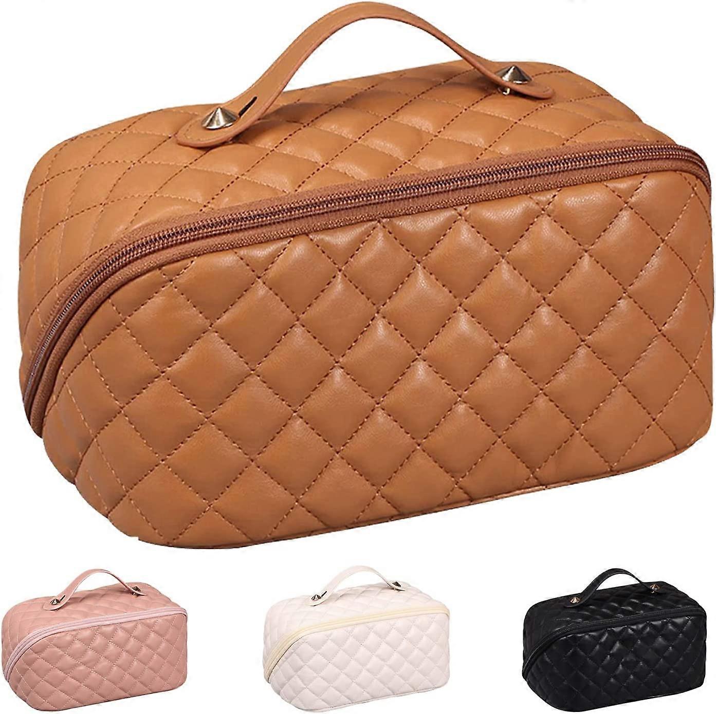 Large Capacity Travel Cosmetic Bag PU Leather Portable Makeup Bag Ladies Make Up Bag Zipper Bag Waterproof Cosmetic Travel Organizer Multifunctiona