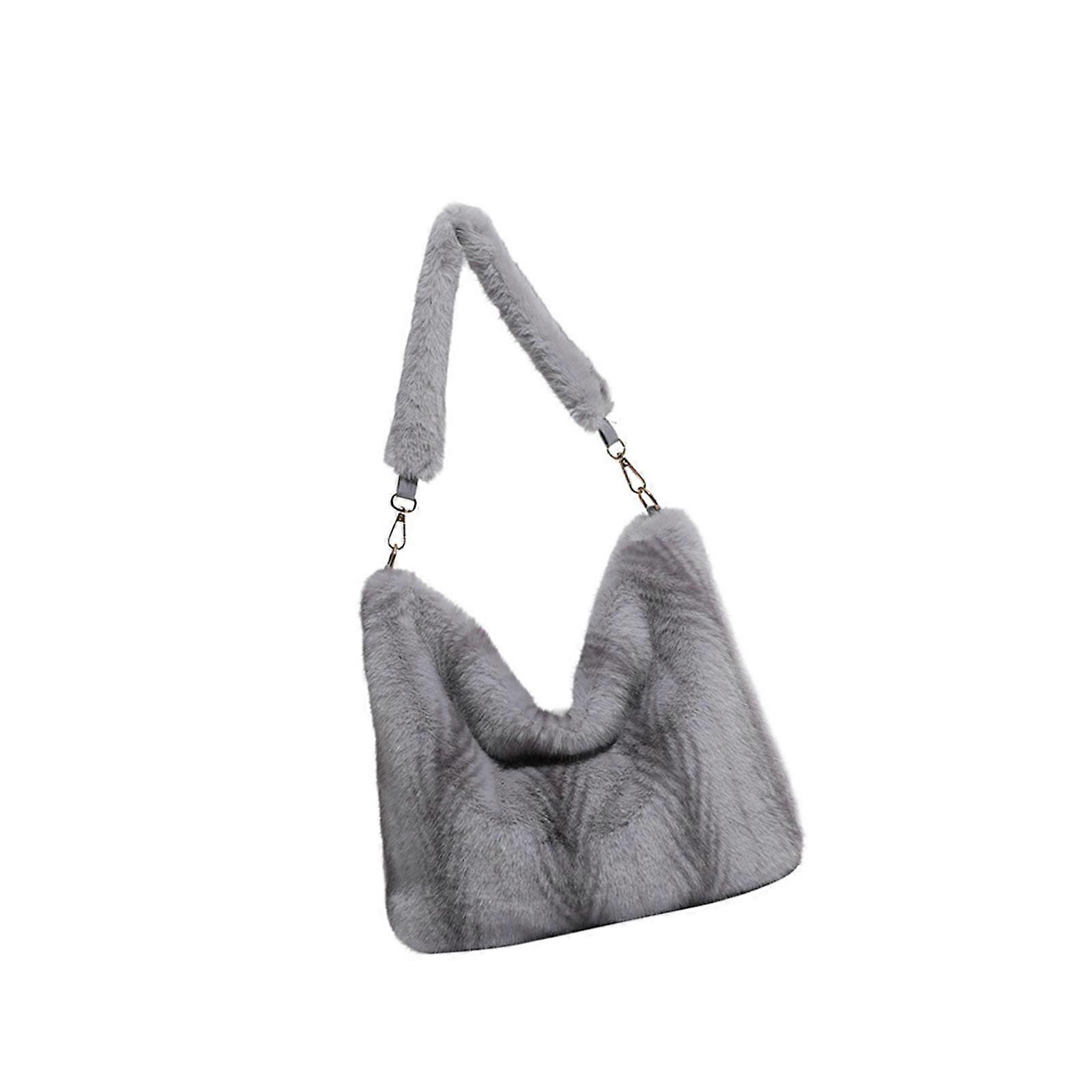 Spacious Plush Bag For Women Shoulder Handbag Lightweight Underarm Purse for Wedding Evening or Daily Use Gray