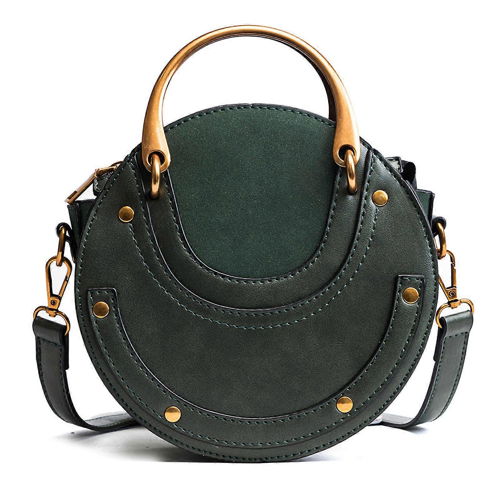 Handbag Classic Fashion PU Leather Women's Small Round Bag Frosted Panel Shoulder Messenger Handbag Green