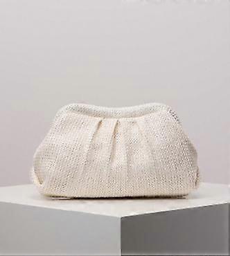 Straw Clutch Handbag Women Summer Ruched Dumpling Purse Handwoven Cloud Bag For Beach Vacation Daily Use