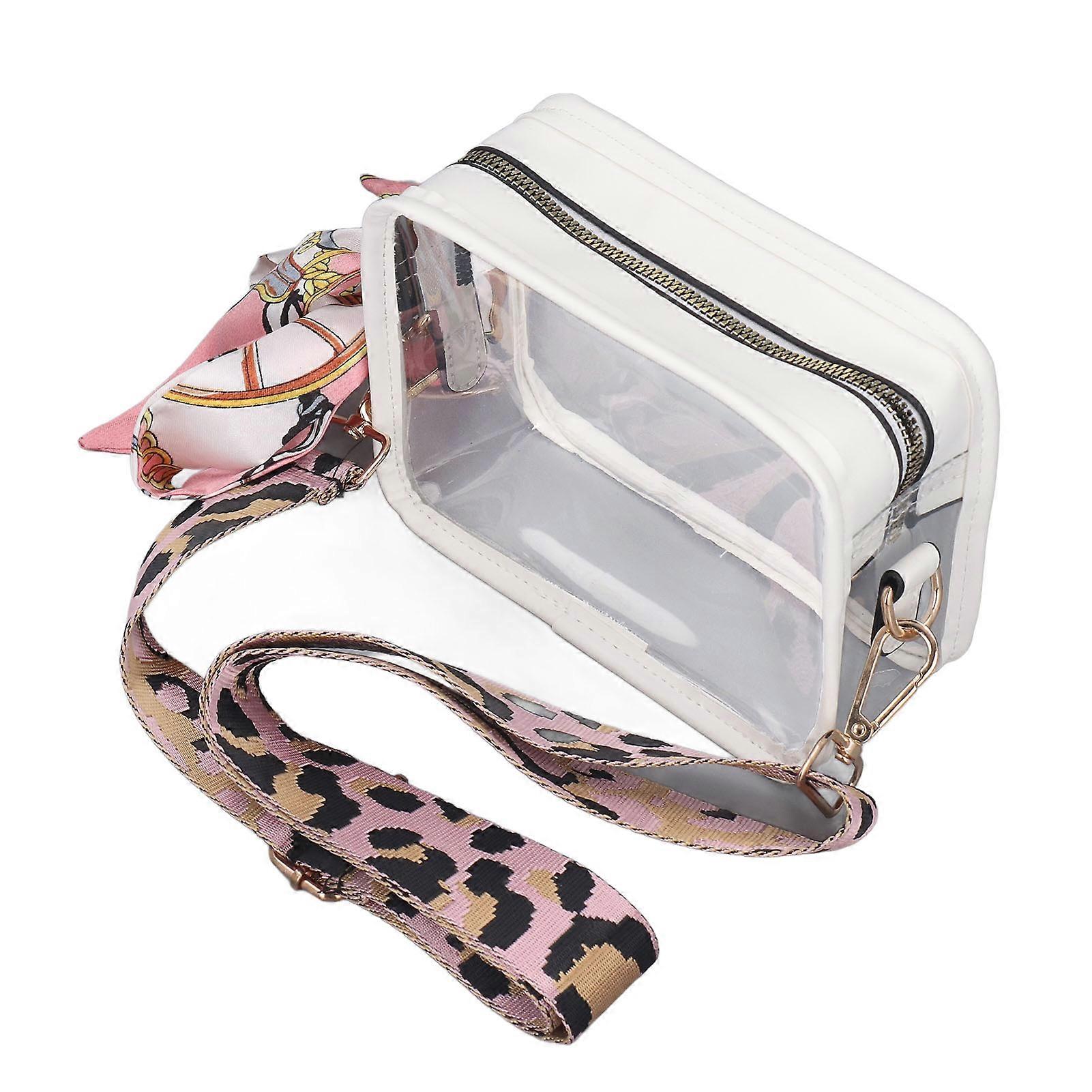 Clear Sling Bag Shoulder Pouch with Silk Scarf 2 Shoulder Strap Ample Capacity Zipper Trendy Versatile Messenger Purse for Women