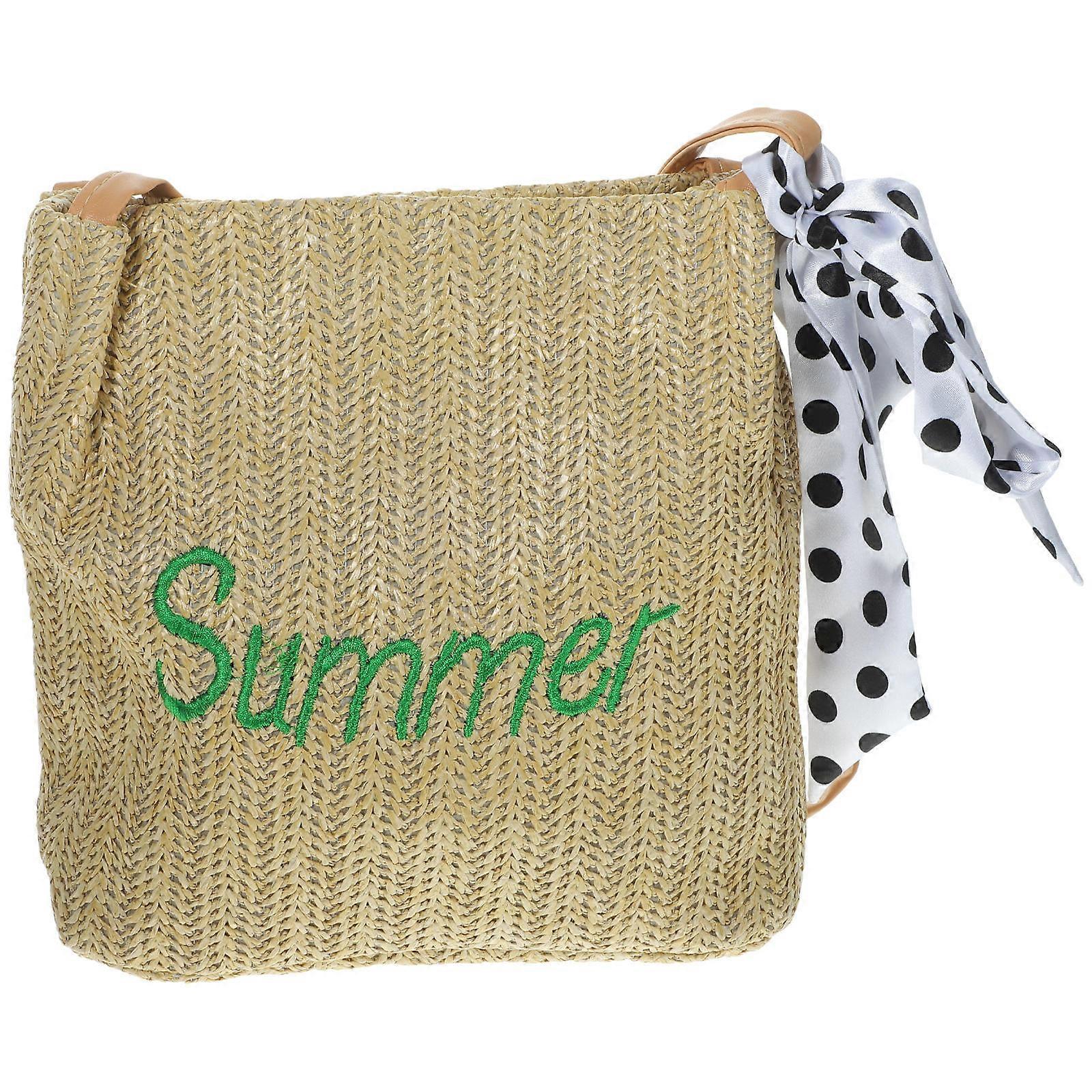 Ladies' Straw Bag Casual Fashionable Handbag Khaki Rectangular Shape Storage Carry Essentials 24.5x26x10cm 1Pack