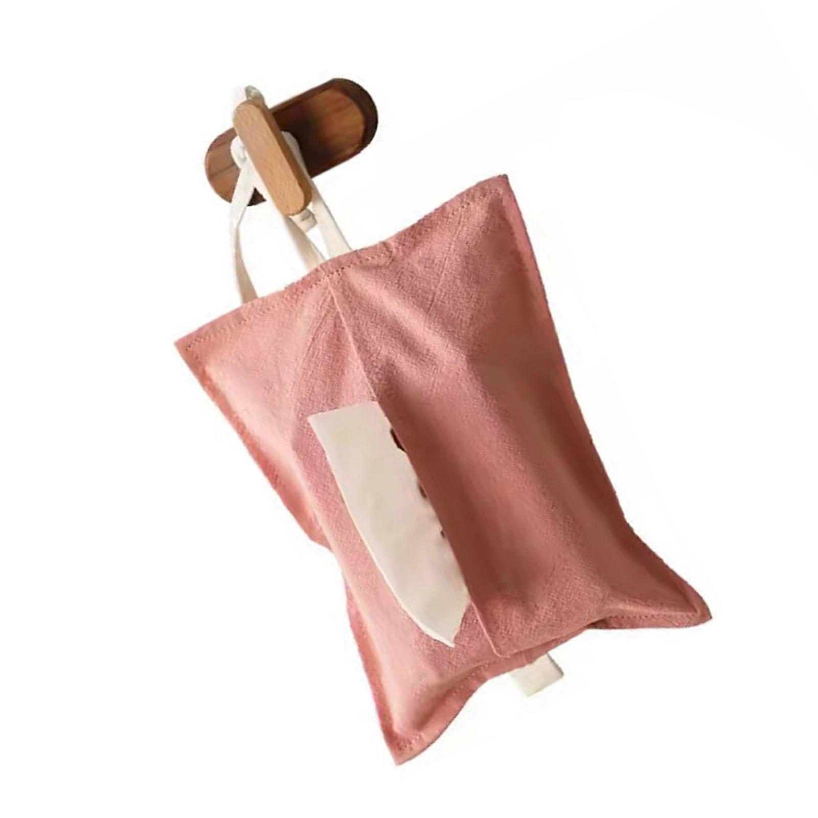 Stylish Cotton Tissue Holder Hanging Drawstring Bag With Convenient Access Portable Design for Home Office Car Interior Pink