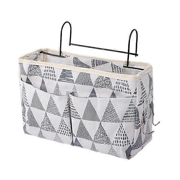 Bed Organizer with Metal Hooks: This hanging bed storage bag is perfect for dorm rooms. Function: With a sturdy metal hook, it hangs easily from your bed, providing convenient access and saving space. It holds books, phones, snacks, and other daily essentials, keeping everything within reach. Versatile Use: Hang it on your headboard, office cubicle divider, cupboard door, or chair. This bed caddy is easy to install and secure; simply attach it to any headboard or bed rail and press firmly to ensure a secure grip. Convenient Storage: Keep tablets, phones, books, magazines, cables, chargers, and other small items organized. No more clutter on your bed, sofa, or desk. Enjoy a clutter-free space with everything you need close at hand. Specifications: Material: Canvas and Iron Color: White, Gray Size: 29x19x10.5 cm Package Includes: 1 x Bed Organizer Note: Colors may appear slightly different on computer screens. Size may vary by 2-3 cm due to manual measurement.