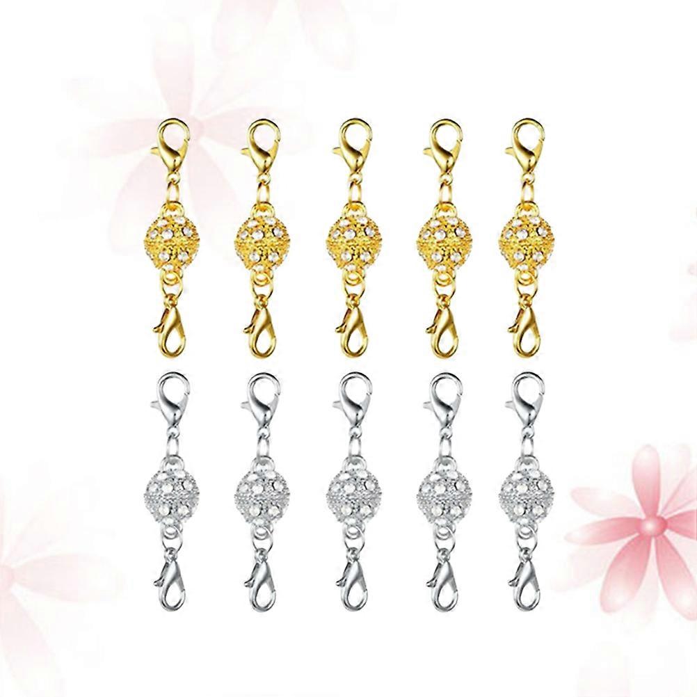 Jewelry Making Ball Design Rhinestone Decorated Lobster Clasp Built-In Safety Lock for Necklace Bracelet Gold Tone Plating 10Set