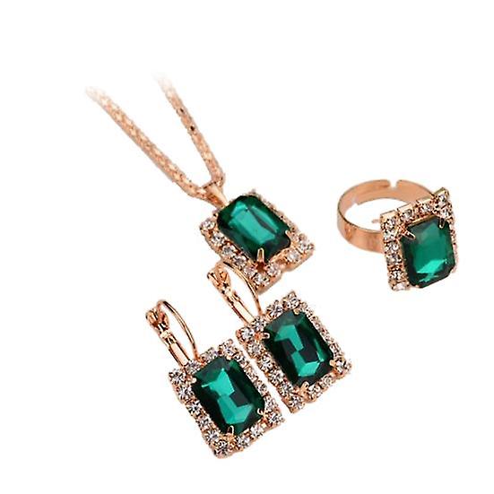 Fashion Jewelry Set Women Banquet Wedding Party Necklace Earrings Finger Ring