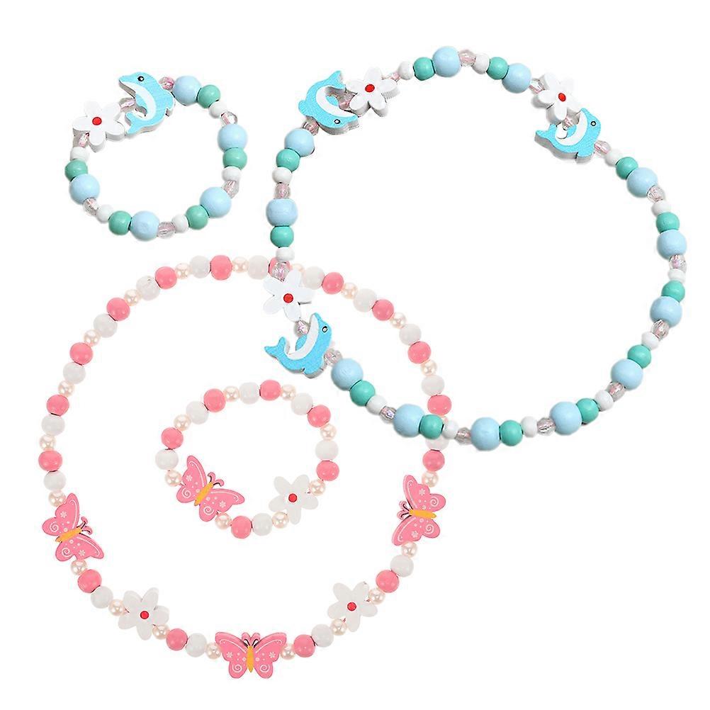 Kids Jewelry 2 Sets Of Cartoon Toddler Bracelets Set Versatile Combinations Beaded Necklace And Bracelet Rose Pink Trendy 2Sets