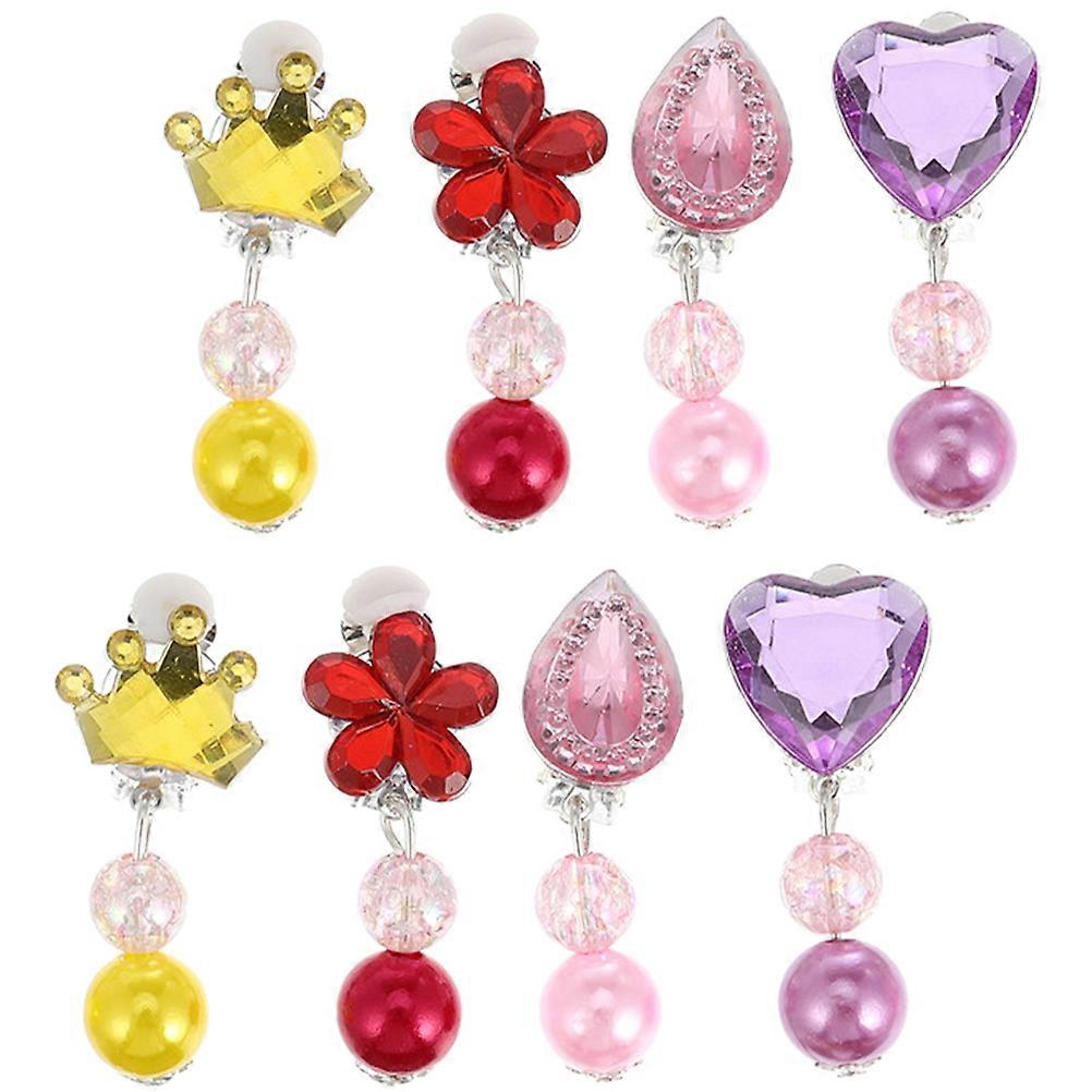 Earring Jewelry For Girl Dangle Clip-On Earrings 4 Pairs Pink Color Weddings