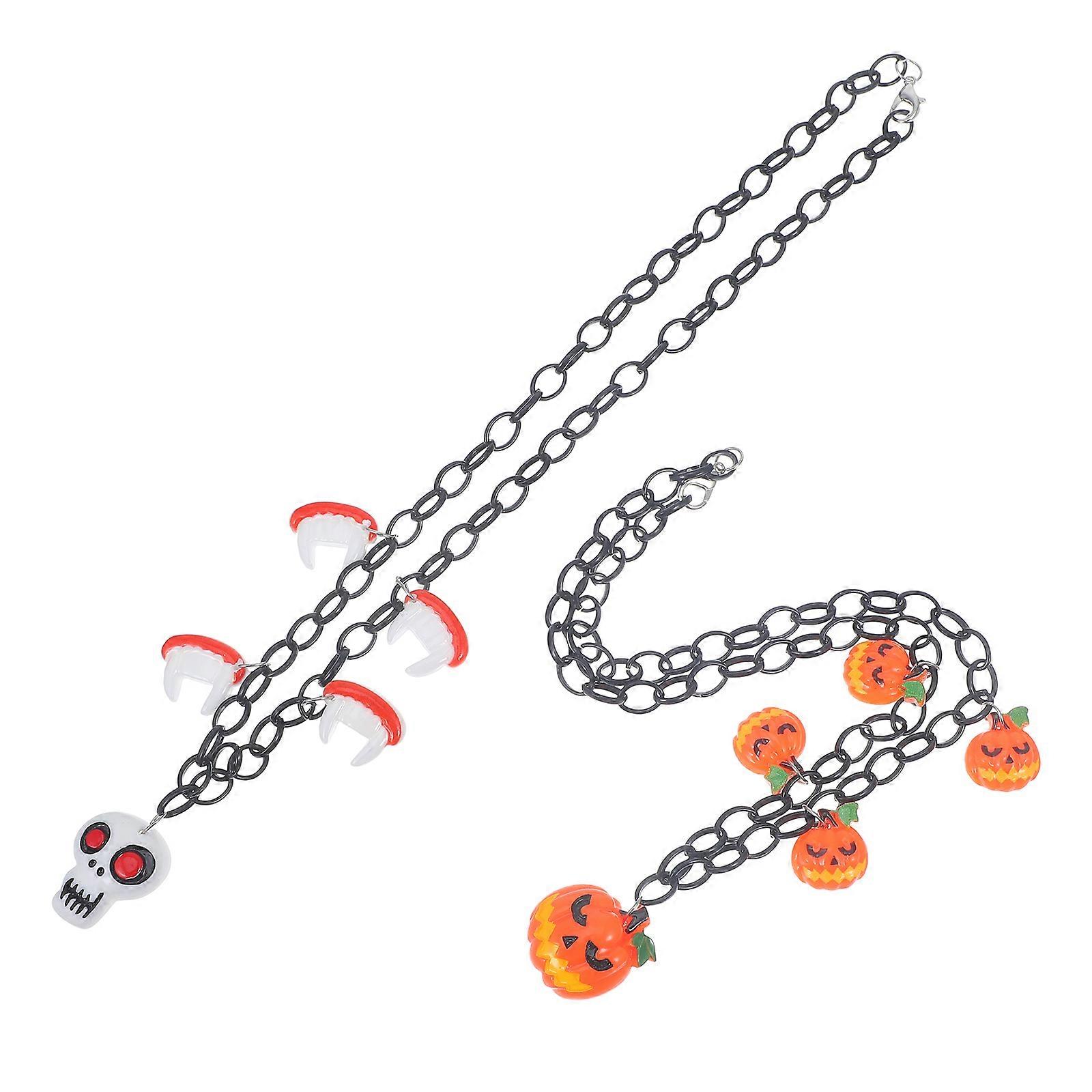 Assorted Color Halloween Costume Jewelry 2Pcs Pumpkin Skull Necklace Suitable For Men And Women Celebrations