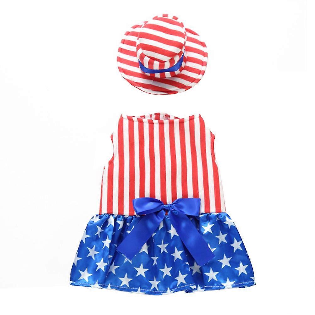 Dog Independence Day Outfits Funny Dog Costume Stars and Wavy Stripes USA Flag Style Comfortable for Girls Size M 1 Piece