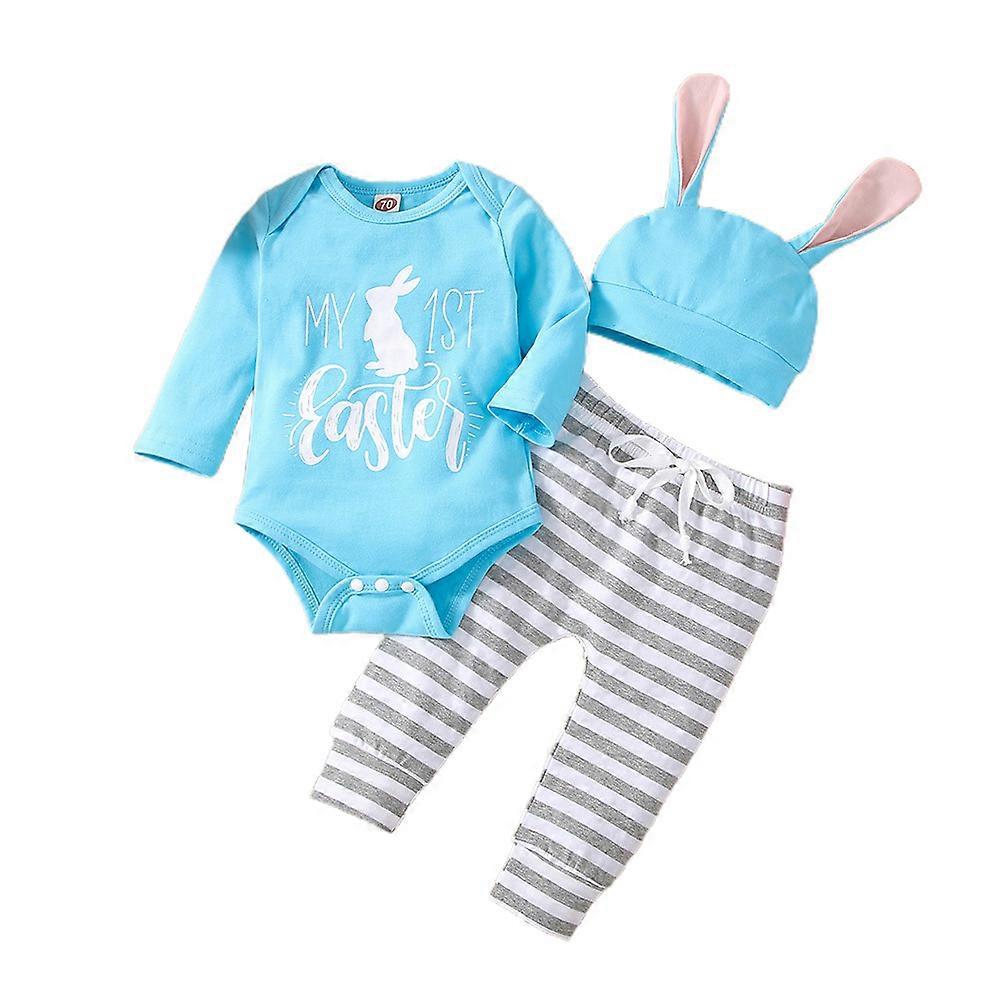 My First Easter Outfit Infant Baby Boys Girls Long Sleeve Print Romper Striped Pants with Bunny Ear Hat Easter Clothes Sets