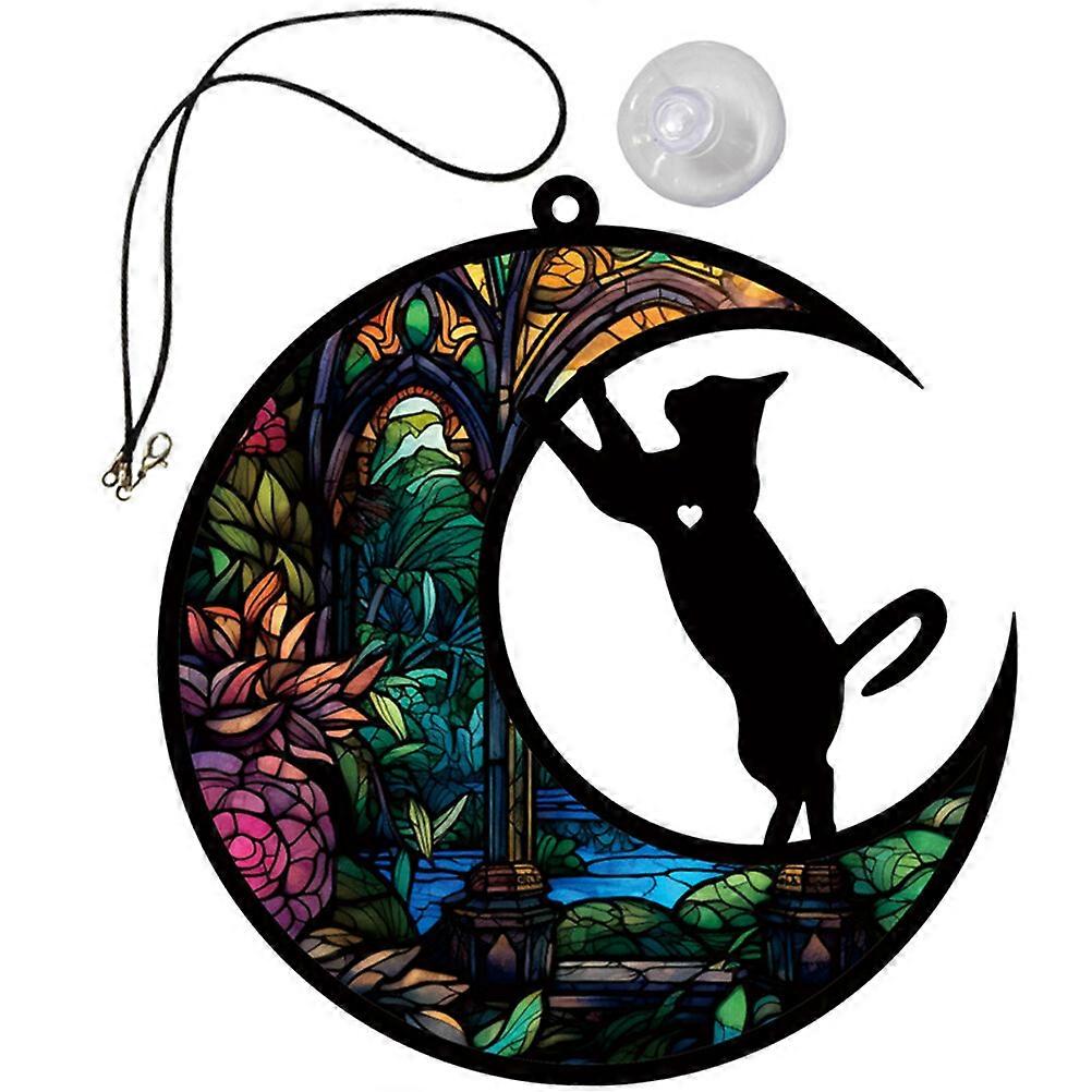 Hanging Acrylic Cat Moon Ornament Household Cat Pendant Holiday Window Porch Decoration