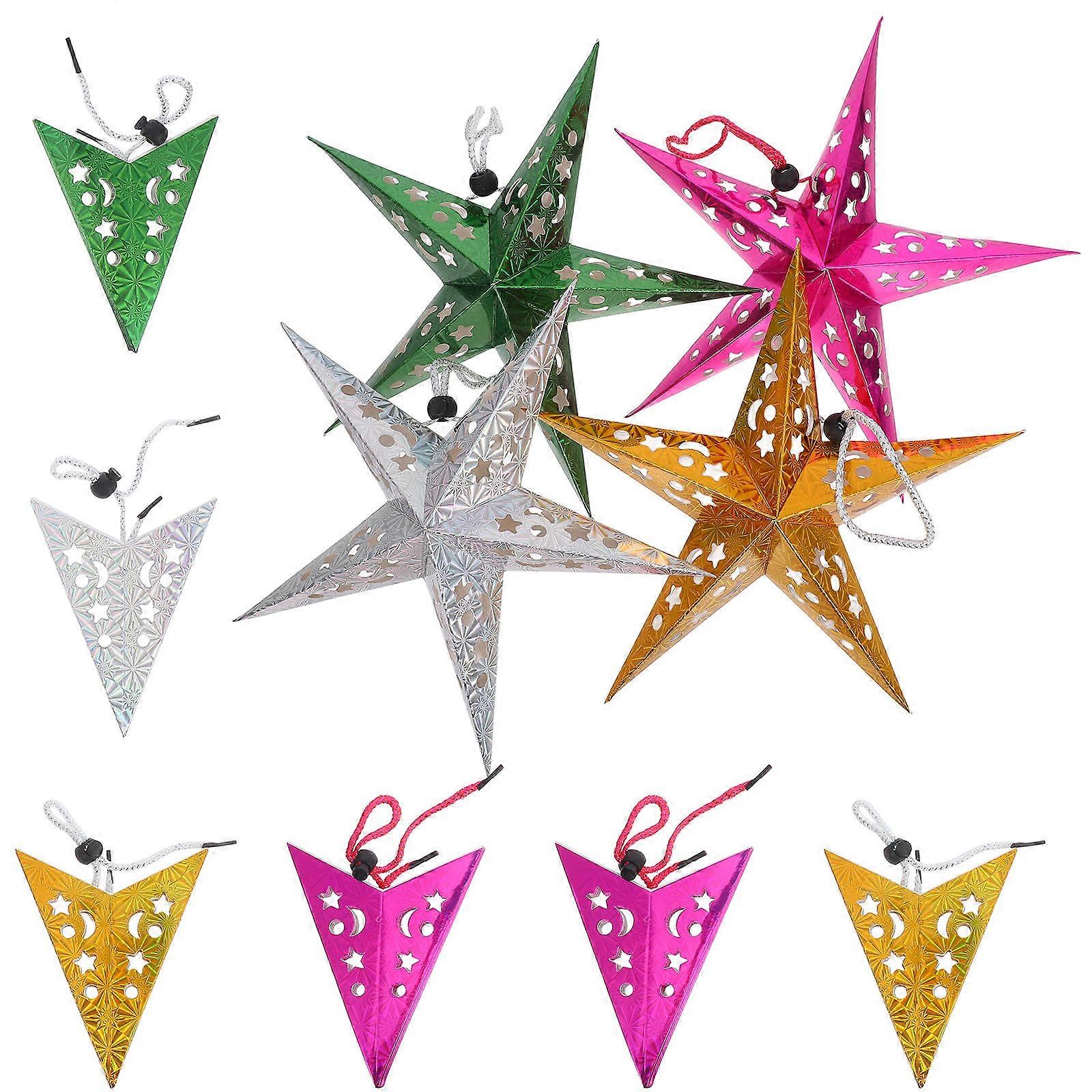 Five-Pointed Star Lamp Paper Lampshade Pendant For Wedding Christmas Birthday Mixed Color 15.00X15.00X11.50CM 10Pcs