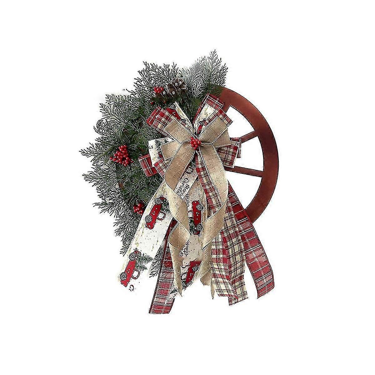 Christmas Winter Wreath Door Pendant Farmhouse Carriage Wheel Christmas Ornament Wreath Christmas Pine Cone Wreath(40cm)
