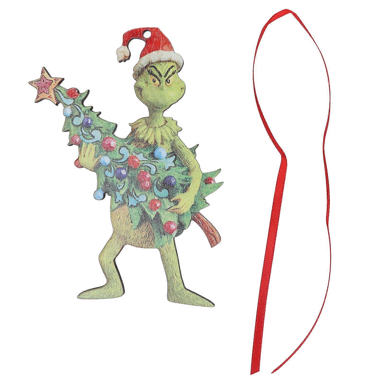 Green Haired Monster Pendant Wooden Christmas Decorative Art Craft for Home Bedroom Office Decor