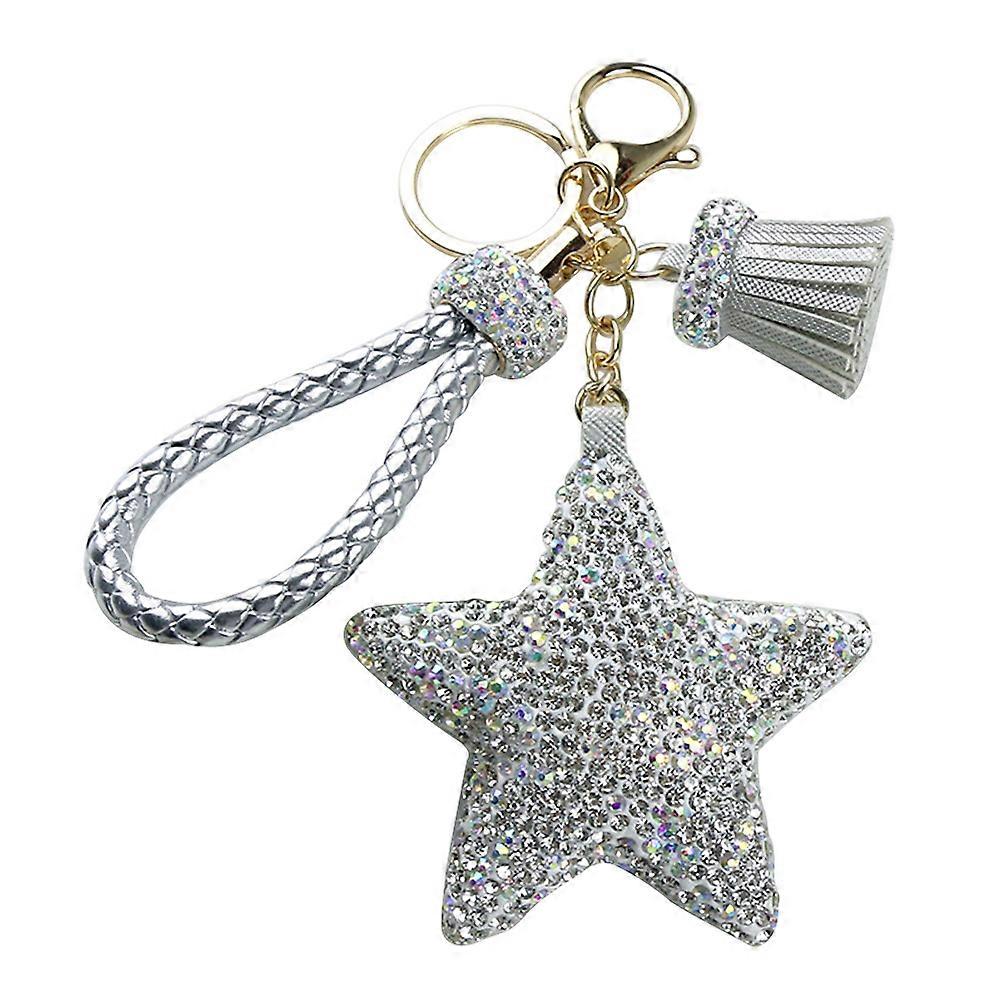 Creative Key Holder Silver Rhinestone Star Pendant for Hanging Keys 2Pcs
