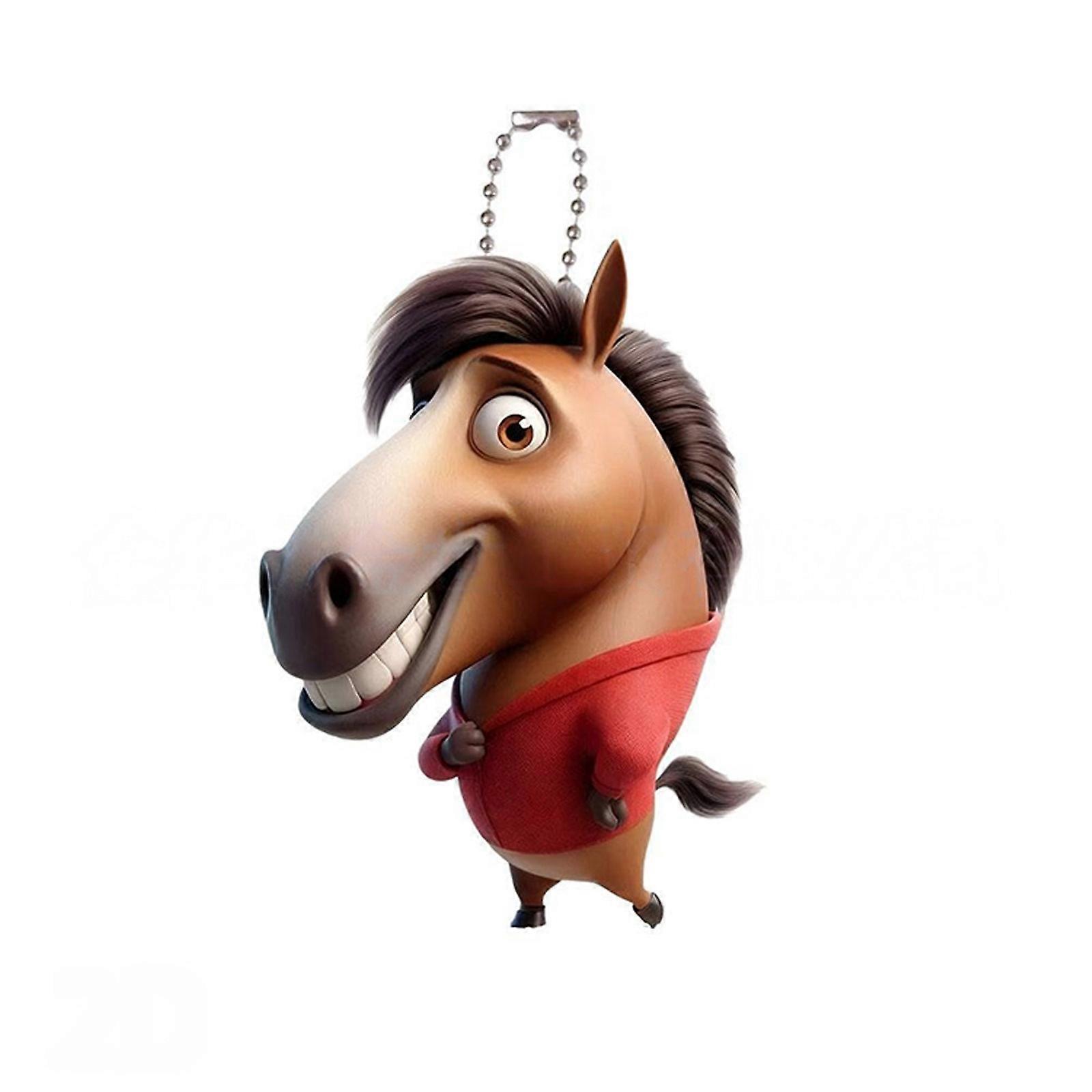 Cute Cartoon Design Large Mouth Horse Keychain & Rearview Mirror Decors Pendant Exquisite Pendant for Vehicle Enhancement Multicolor