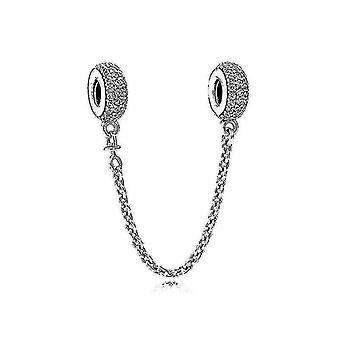 Silver Plated Pendant Safety Chain Stopper Bead Charms Jewelry Bracelet & Bangle for Women Gift