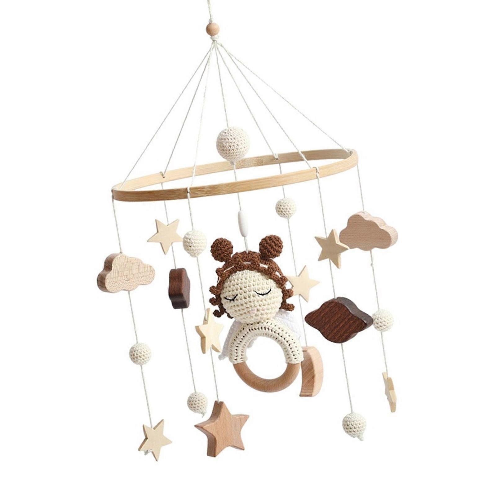 Wooden Crochet Angel Nursery Mobile Hanging Pendant Baby Toy Auditory Learning Sensory Development Nursery Room Decors Multicolor