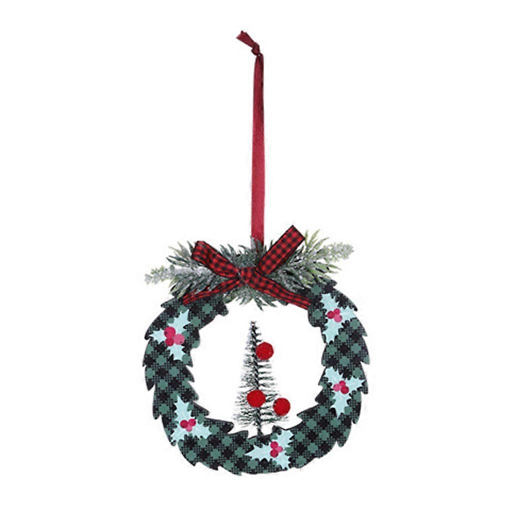 Wooden Christmas Pendant Xmas Tree Hanging Decor Pine Tree Wreath Ornaments Holiday Decoration with Strings New Year 2022