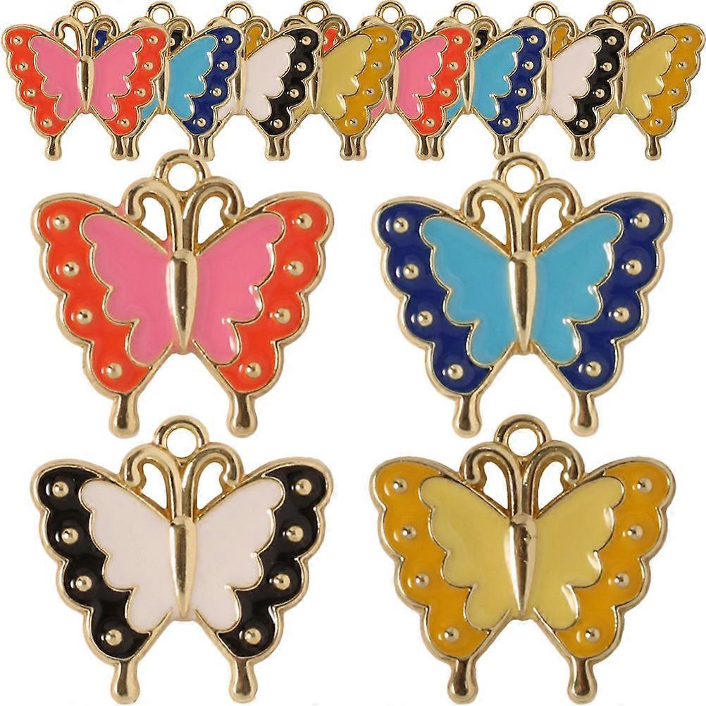 Butterfly Pendant DIY Hanging Ornament Materials Alloy Colorful Enamel Coated 12pcs