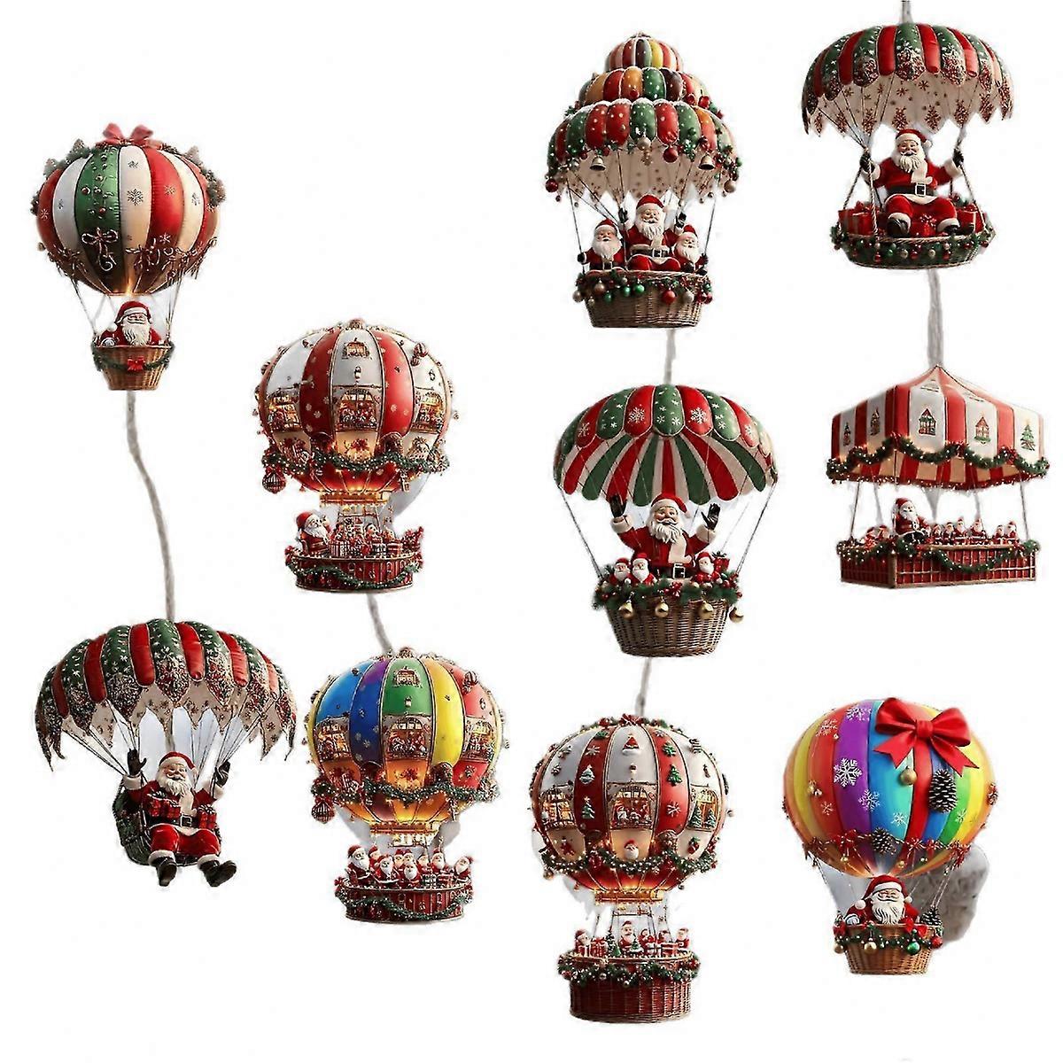 Christmas Wooden Hot Air Balloon Santa Claus 2D Flat Pendant For Home Decoration Christmas Hot Air Balloon Lightweight