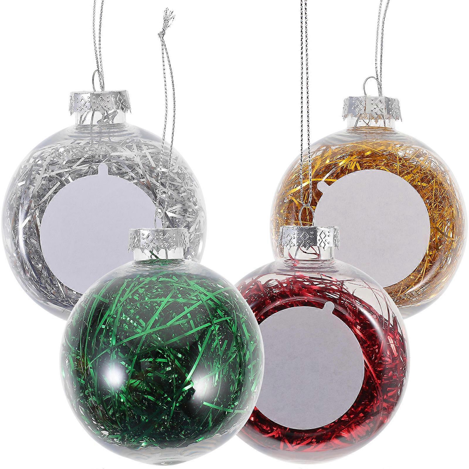 Christmas Hanging Pendant 4Pcs Round Decorative Balls Assorted Color DIY Photo Ornament for Christmas Decor 8CM