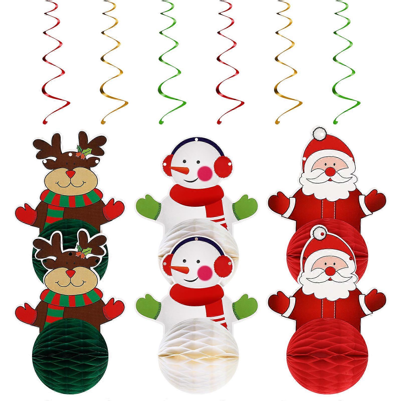 Hanging Pendants Christmas Paper Pendant Honeycomb Ball Door Hanging Colorful 3 Meters Rope 2 Sets