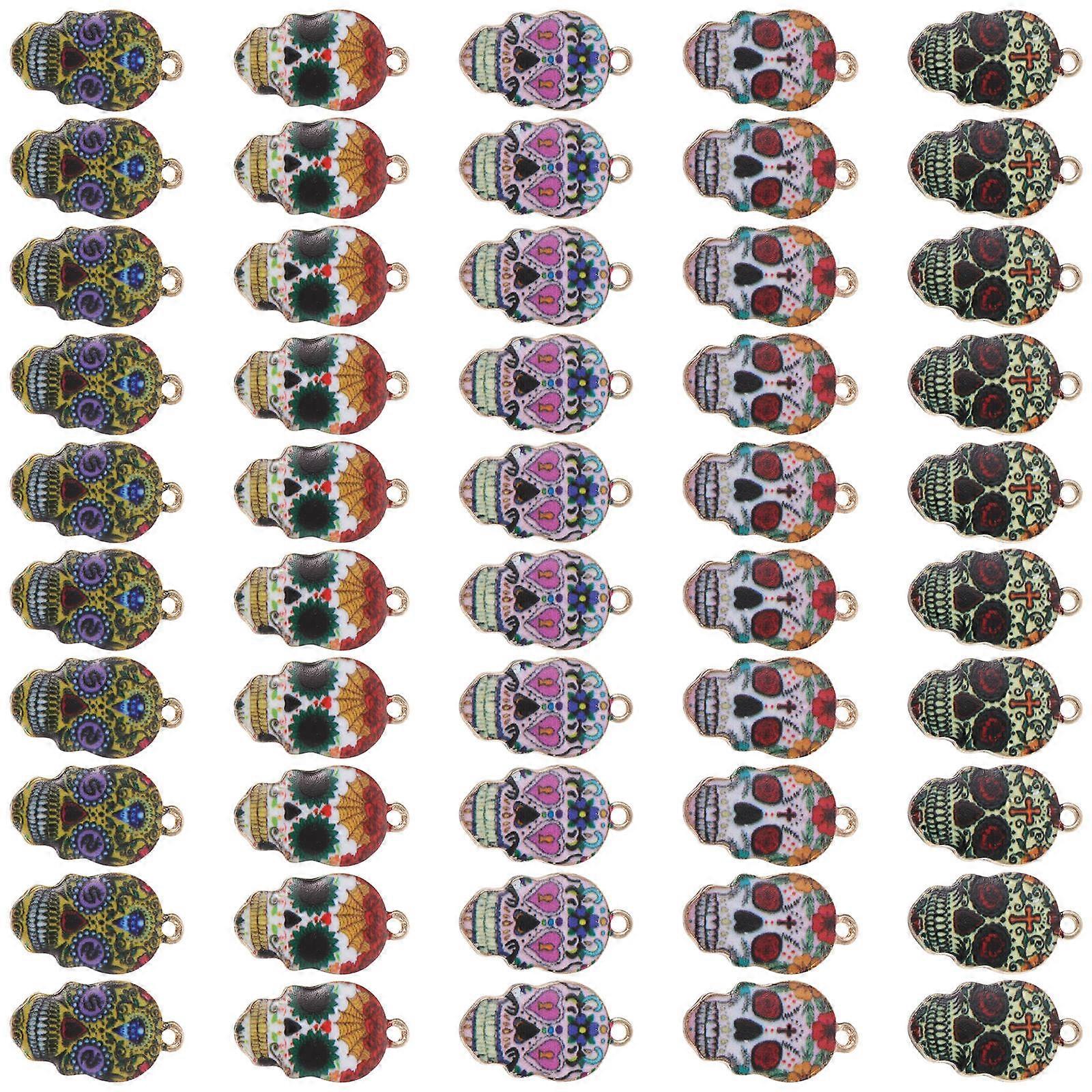 Alloy Pendants 50Pcs Skull Head Charms For DIY Jewelry Making Assorted Color Accessories For Loved Ones
