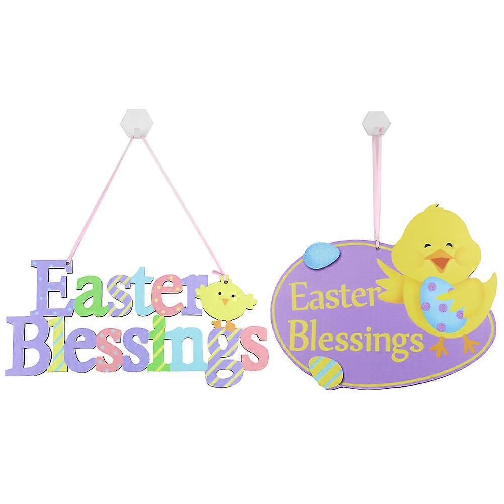 Front Door Decor Wood Pendants Easter Party Festival Atmosphere Letter Shape Assorted Color 2Pack
