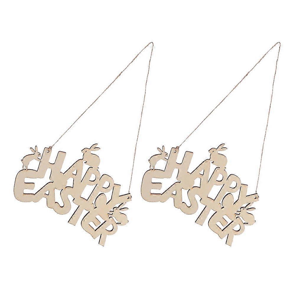 Hanging Wall Decor 2Pcs Happy Easter Wooden Hollow Decoration for Front Door Unique Art Design
