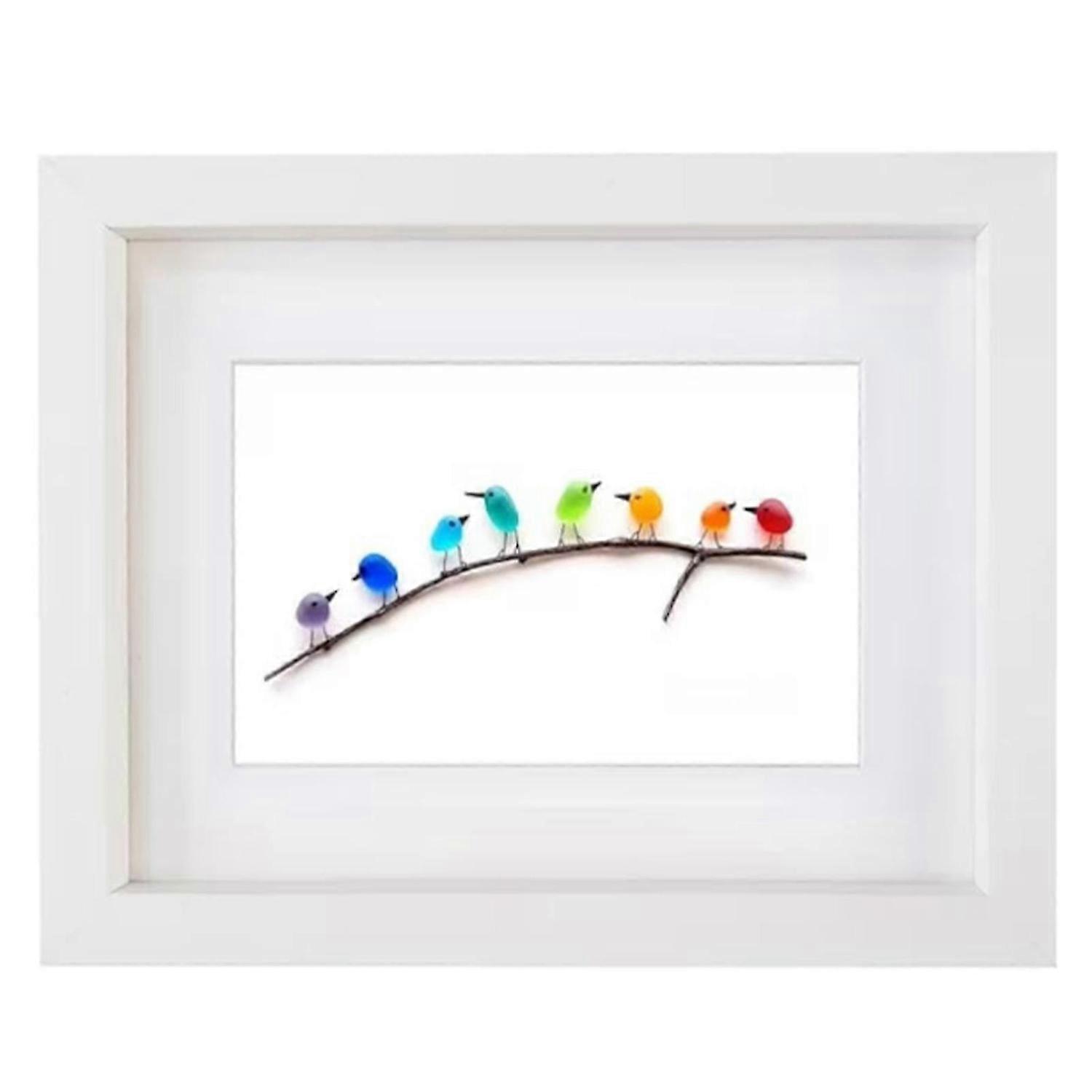 Sea Glass &Driftwood Picture, Unframed Unique Handmade, Rainbow Bird Wall Decor,Suitable for Bedroom
