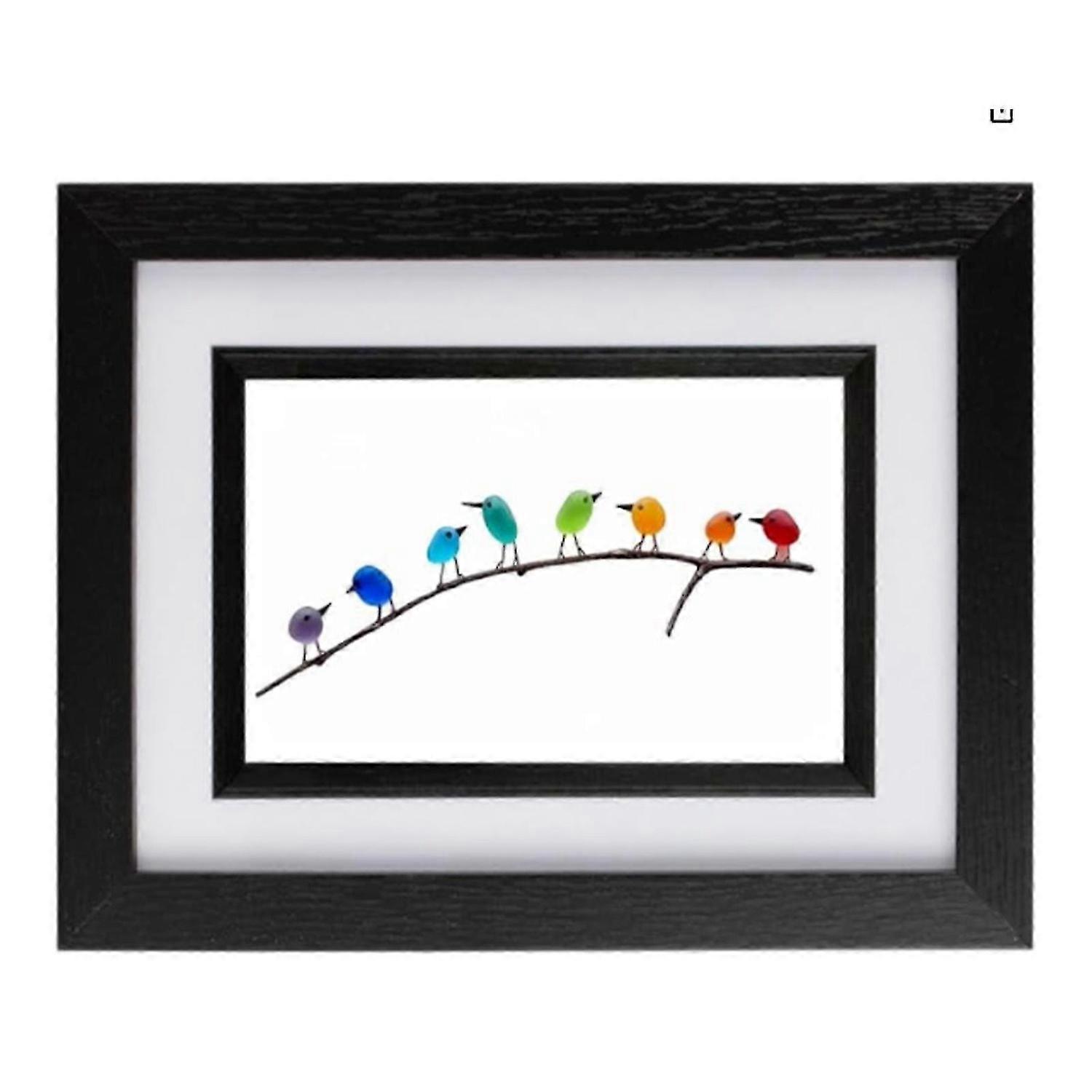 Sea Glass &Driftwood Picture, Unframed Unique Handmade, Rainbow Bird Wall Decor,Suitable for Bedroom