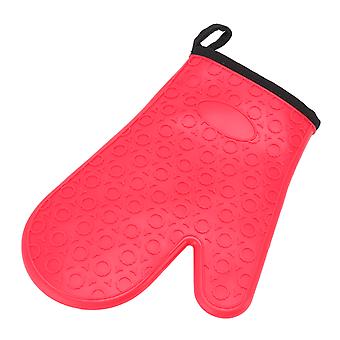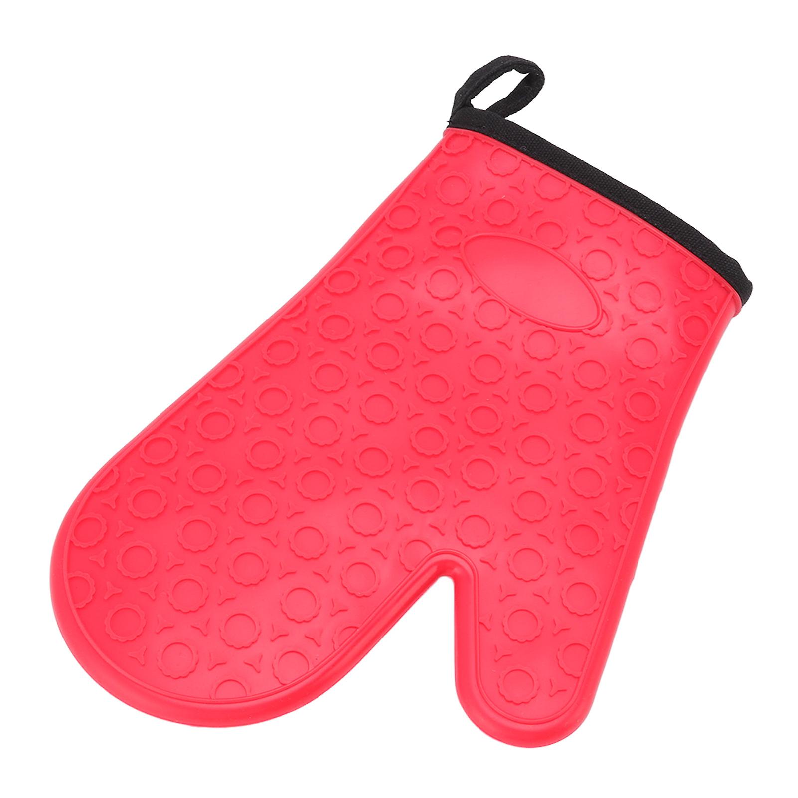 Silicone Oven Mitt High Temperature Resistant Waterproof Slip Proof Kitchen Baking Glove with Cotton Liner Red